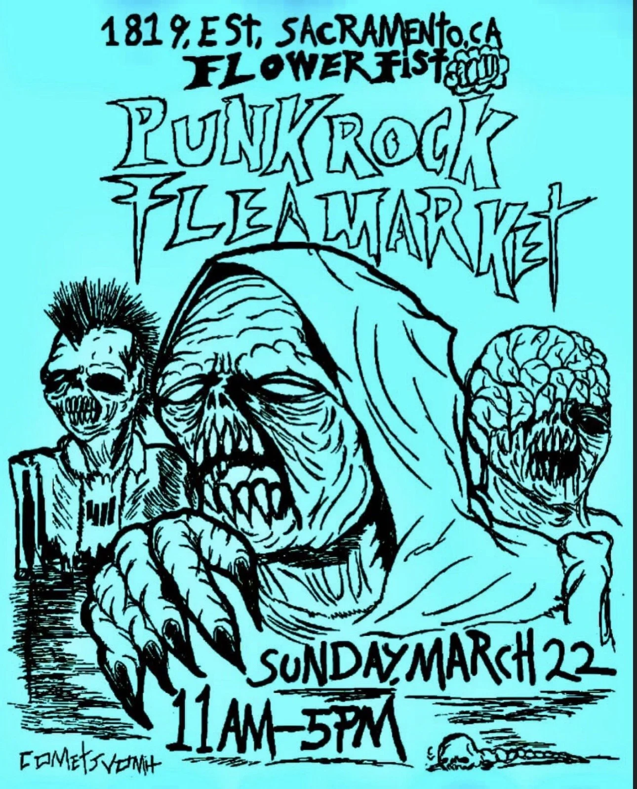 The Punk Rock Flea Market returns to Flower Fist Art Market Sunday March 22nd, 2025 ! Get ready to revisit some of your favorite local makers now with a live music lineup and delicious food from @vatostacos.sacramento !! Punk Rock Flea Market hits Flower Fist Art MArket full force 3/22 from 11-5PM.